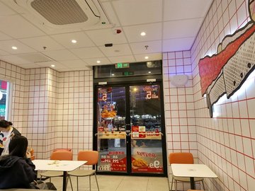 依然系人气好火爆噶一间肯德基餐厅,平时都比较少来帮衬,因为怕热气,但系最近某网站有1蚊噶秒杀,所以就买左个香辣鸡腿堡,真系好抵,而且分量都唔会话缩水,正常甘大个。入面夹住噶鸡腿都几大块,不过其实系炸得好犀利,所以先会咁样觉得,新鲜热辣咁吃真系好香脆,虽然热气,而且鸡肉噶口感都比较嫩滑,中午吃呢个再加一杯饮料都足够饱。