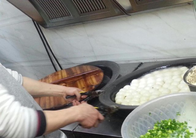 腾元生煎——生煎包 他们的包很特别,很出名添,点解咁讲,由于他们这里的包先做好,每天一早先把馅弄好,之后用面粉摸成一个一个的面团,之后就一个一个馅放到面粉里团打面,等到完成看不到里面的馅为止。之后就放到蒸汽十足的炉里蒸上它们20分钟噶,原本小小的一个面团,出来之后变得大大的啦。嘻嘻。 只有冷却下,再用生油烫开,之后在锅里煎,煎的由白色的变成一个一个的金黄色,哇,一个个的小金包就在眼前啦。嘻嘻。 吃起来嘛,这里都基本是打包的,我们就来一份,里面就4个哦。不过吃起来很美味,首先切开盖子是香,之后吃上去是脆,再咬一口是软。这样的感觉,怎么能抵挡,我停不住再吃一个啦。很快就吃饱啦。嘻嘻。 这里的环境一般啦。不过就是价格上比较实惠。怪不得那么多人来抢吃啦。嘻嘻。查看更多