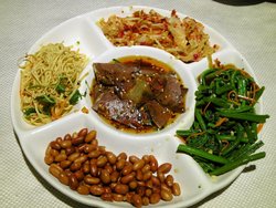 虽然两个人其实不好叫菜,但是在东北餐厅很多主食的菜谱中,两个人还是能找到很多能吃的东西的。我和朋友很久没见,两人先在小东北碰头,我喜欢吃草帽饼所以先叫了个草帽饼,基本上草帽饼不太厚就会好吃;朋友想吃饺子所以也多叫了一笼饺子,比较干身一些。再来我们看到隔壁桌的小吃拼盘也凑个热闹叫了一个,看似很丰富其实分量不很多,味道也比较一般——最重要的是蒜味很重,凉菜还是不能一次过吃太多了。…查看更多