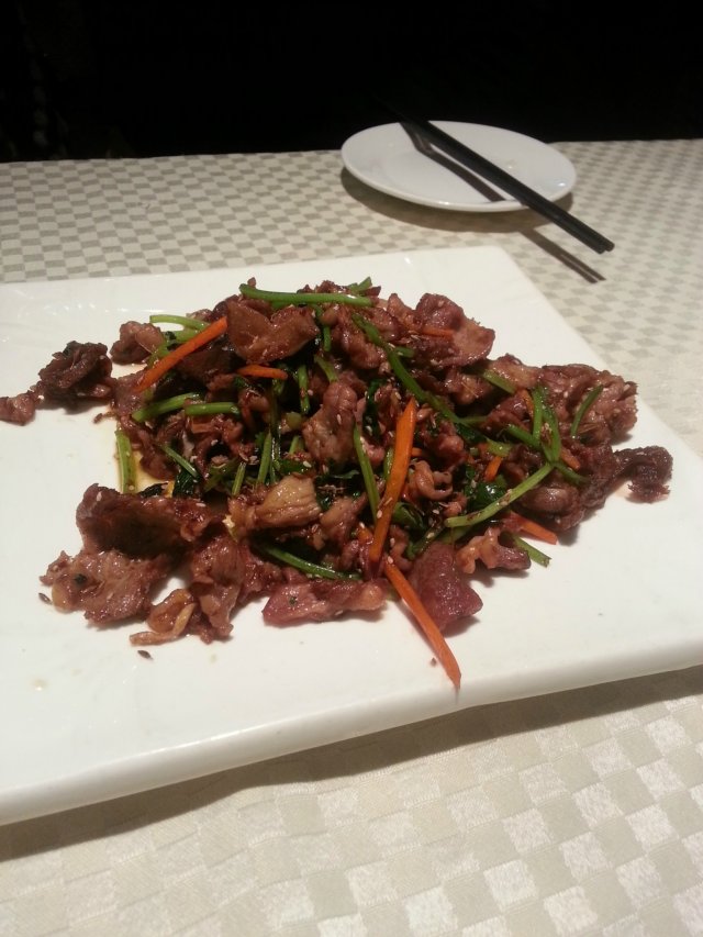 店唔大,入去有种简陋的感觉,anyway,味道好,价钱平就好了。服务员态度一般般吧,特别系那个收银的,黑口黑面。京酱肉丝,这分量还算可以,开始以为唔多,但吃起来真的多,面饼连同炒得香的肉丝、大蒜丝、青瓜丝卷着一齐吃,味道几好,唔咸,其实东北菜的味都不错的。这里的铁板羊肉也挺好吃的,分量唔错,反正两个人也吃不完了。查看更多