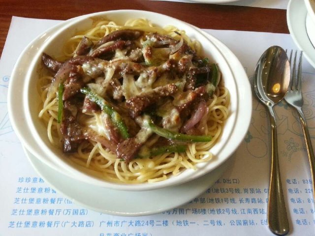芝仕堡意粉餐厅 鱼蛋河等級42013-09-09 關注 一家吃芝士好出名的餐厅,位于广大路的分店比较新。有少量的窗边位,环境尚算宽敞,容纳几十张桌子。上菜速度很快,服务员态度辛勤。浓浓的玉米鸡肉忌廉汤,香喷喷的,配上芝士烤蒜蓉包,更好吃,白汁蘑菇腌肉烩意粉,配上洋葱,青椒,西红柿更是秀色可餐,菜二十元,还可以加两元多点重芝士。…查看更多以上食評乃用戶個人意見 , 並不代表OpenRice之觀點。讚好分享芝仕堡意粉餐厅 芝仕堡意粉·扒屋 (廣大路) https://s.openrice.com/KtbT0m0lIe700檢舉 張貼 評分5味道4環境4服務4衛生5抵食