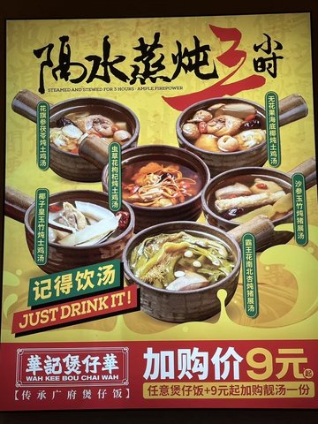 生晒臘味四寶煲仔飯 / 無花果燉土雞湯 / 花旗參燉土雞湯 / 生晒臘腸拼窩蛋牛肉飯 / 香菇滑雞煲仔飯 / 香菇滑雞拼豉油排骨煲仔飯