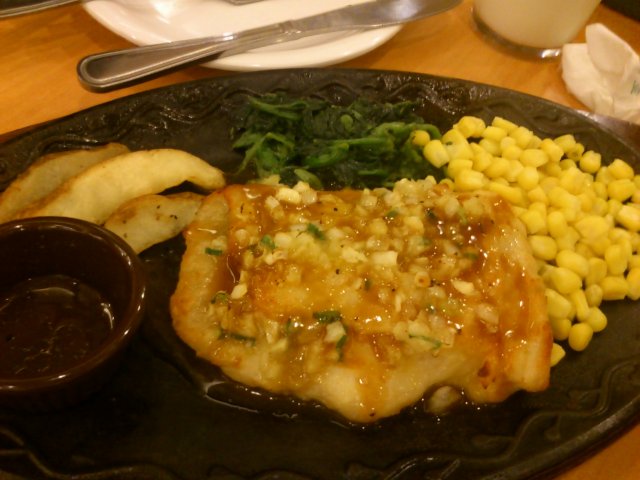 去左万国广场行街,到左中午嘅时候过左黎萨莉亚食野,好多人啊。都等左十几分钟先有位啊。不过服务都跟得上嘅,上菜好快下。点左份蒜香鸡扒,有鸡扒,粟米,菠菜,薯仔,配料都几丰富啊。鸡扒好嫩啊,加埋d蒜,好香,好正。墨鱼汁意粉,看上去都几重口味下,不过味道几好,几特别下,仲有d墨鱼。食完个口黑妈妈嘅。查看更多