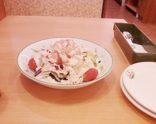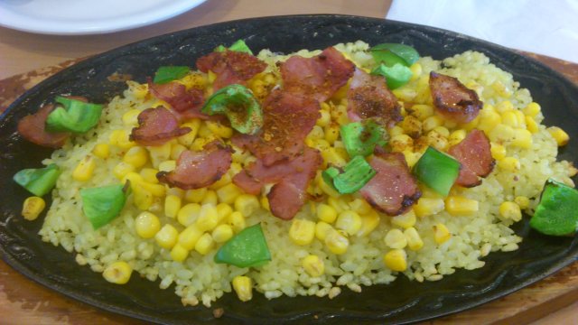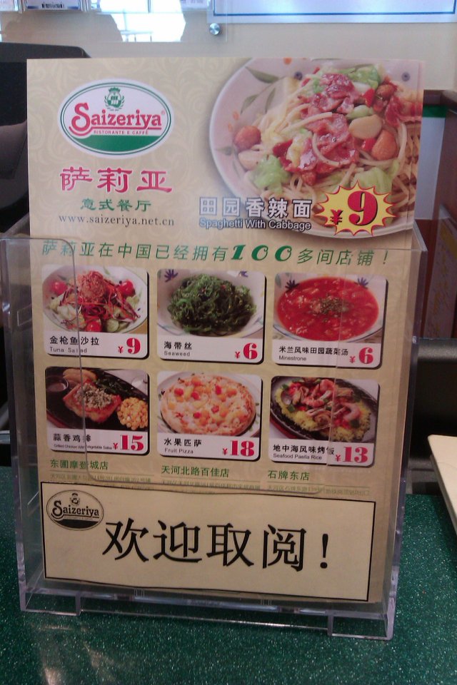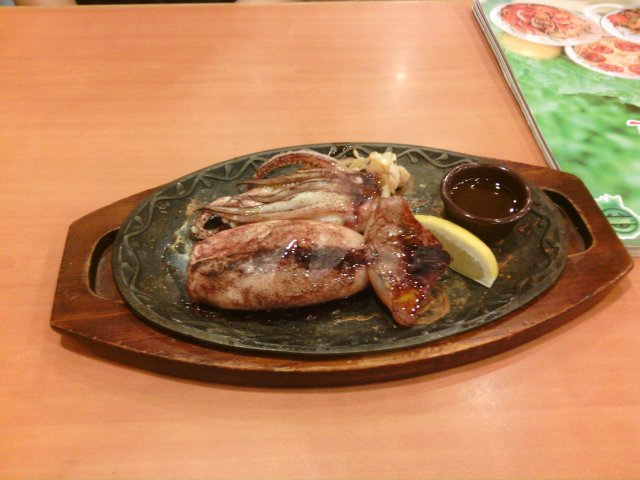 是朋友介绍来这里吃,一直都很想吃扒类的。这间萨莉亚是位于石牌东路,就在电脑城附近了,买完东西就过来这里了,店里的生意很旺,不过好在找到位置,环境不错,是年轻人喜欢的经营模式,很轻松自在,桌子都很小,一般适合两到四人,如果人多的话可以拼桌,很方便。这里的东东没话说,真的是物美价廉,五个人就餐,才消费160元左右,太抵了。萨莉亚在广州的分店可多了,一般都开在不起眼的地方,但因为出品口碑很好,所以回头客特多,不怕没生意。每张桌都有一个编号,吃完埋单就带上这个牌到前台付款就OK了。每张桌都已经放好汤匙、刀、叉和纸巾,而且桌面上有一个按铃,如果需要服务按下它就行了,服务员看到大屏幕上显示的桌号就会过来,服务员的态度很好,都很快来到。要喝饮料,7元/位任喝,如果想省点可以喝白开水,是免费的,但要自己到茶水处自斟。一碟意粉才11元,最高好像才15、16元这样,而且味道不错,物超所值。金枪鱼沙拉,点完没多久就上了,速度真快,金枪鱼的份量还真多,先吃肉类,这沙拉留到最后吃比较好,能去油腻。哗,好大块金枪鱼,好香,啖啖肉,I like。海藻,份量比较小,六元一碟,味道一般。黑椒鸡扒,鲜嫩的鸡肉上面洒着好多黑椒,每一口鸡肉都混合着黑椒吃,有点辣,鸡肉很滑,份量很多,才15元一份。香辣肠,外韧内软,带点辣,还有一些烤过的土豆伴碟,土豆烤得很香,外脆内粉。大鱿鱼,上桌时就是这样的,然后自己动手切成一小块,大家一起分享,鱿鱼煮得刚刚好,不会太熟也不会生,好弹牙。点了一桌子菜,所以都不用吃太多饭,这碟饭的份量比较小,不过对于我们来说刚刚好了,饭应该是放在铁板上煎过,饭底有点焦,很香。真心的喜欢萨莉亚,是朋友聚会地方的很好选择,平均每人35元左右就能解决了,而且不限坐多久,我们一下子就坐了两个多小时,和朋友聊了很多,哈哈~~…查看更多