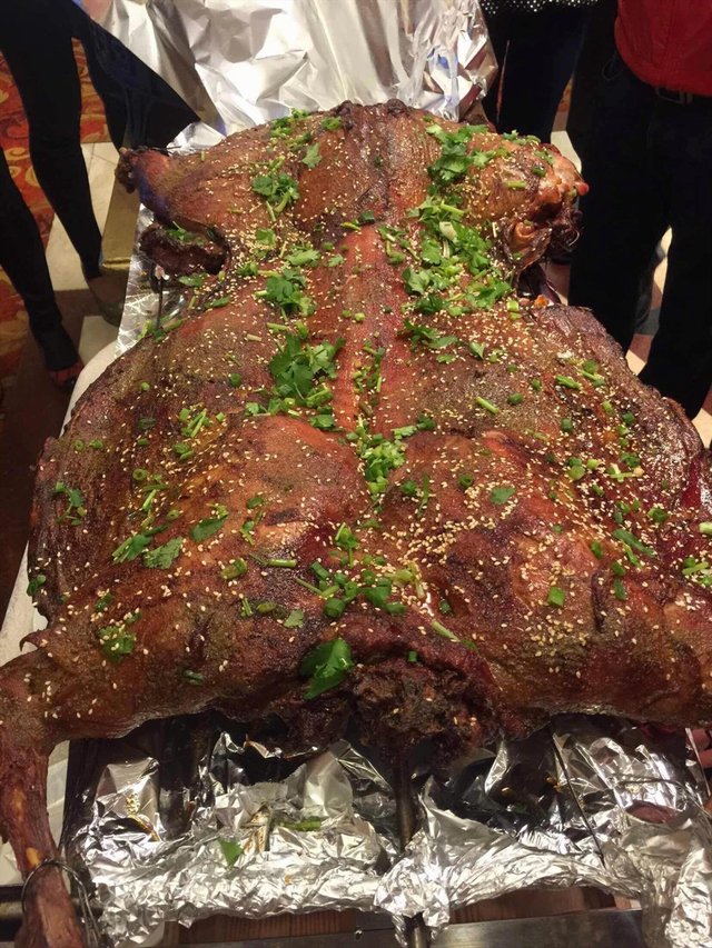 蒙乡烤全羊来过两三次,生意很好,一进店子就可以闻到那股很有特征性的烤羊的味道了,价格倒是海信,人家的羊肉本来素质就很好的。烤全羊也不是太大只的,一般来说四五个人是可以的,羊肉烤的很好,吃了几次都没有见到那怕些许烤焦的地方了,不过外皮是有点硬的,这个自己切的话很难的,羊肉加了很重的胡椒和姜粉,但是吃的时候,依然是羊油味道为重的。烤羊腿会小份很多,这个是可以原味烤的,把羊油全部都逼出来了,羊肉是松脆的很了。…查看更多