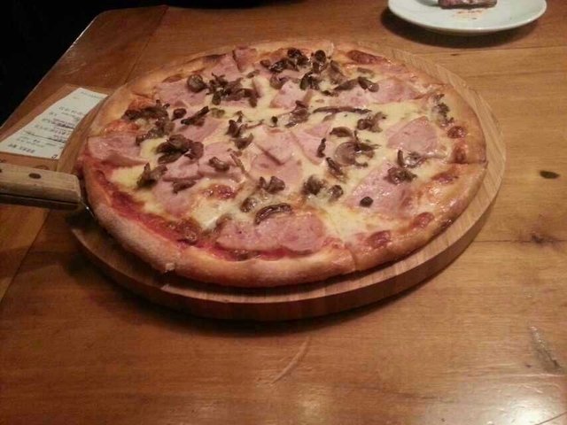萨莉亚意式餐厅——培根比萨 一个10寸的比萨。烤得新鲜好吃,表层都铺满了美味的火煺肉,再给了点芝士上去,稀放了些胡椒粉,让我们看上去很是量,垫层是烤的脆脆的面粉!这里也给客户方便,把一个圆盘给分开六分,让我们吃起来也方便卫生!培根很好吃,烤得刚好!不会很干的肉!而且价格也很实惠,服务态度也很好!环境也很安静,适合带小孩来吃吃喝喝,放开心情吃一顿好的! 这除了比萨还有其他美味的食品,还有好喝的饮料!…查看更多