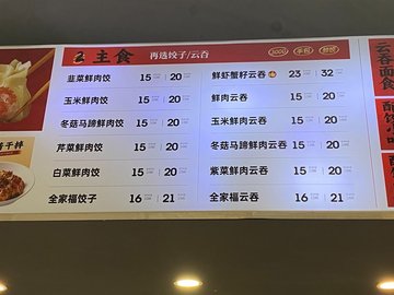 鮮肉雲吞麵 / 干拌韭菜鮮肉餃 / 玉米鮮肉餃 / 干拌紫菜鮮肉雲吞 / 鮮蝦蟹子雲吞麵 / 玉米餃