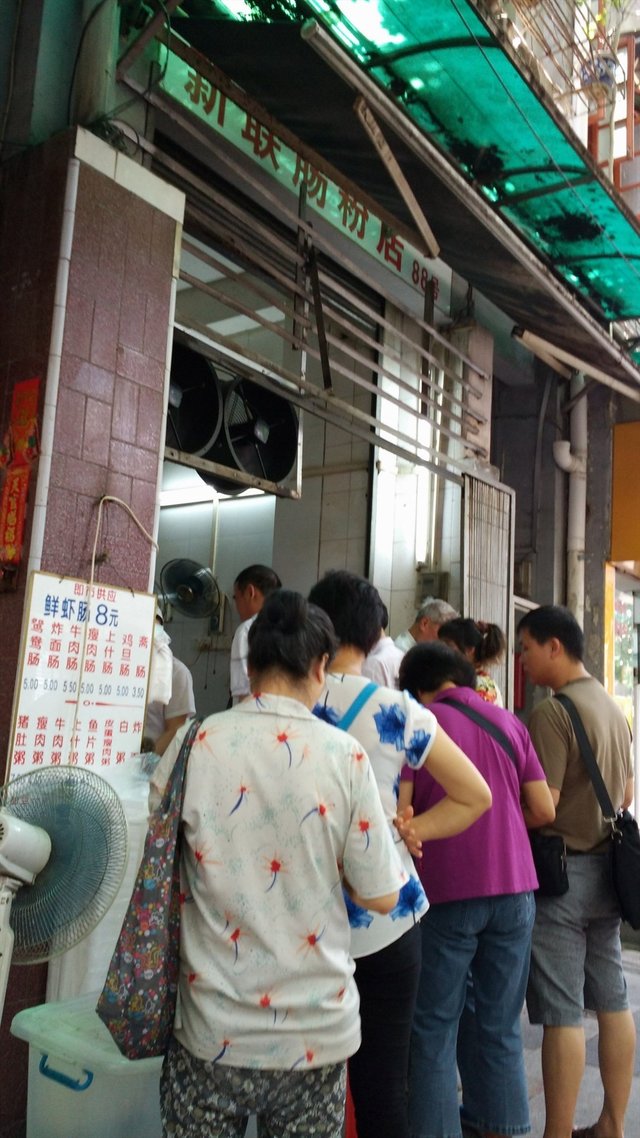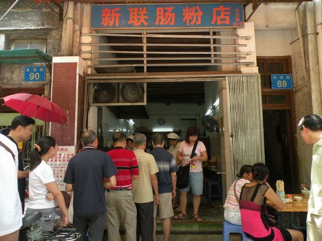 一个人的觅食之旅第三站,新联肠粉店。其实还是挺好找的,多宝路一直走下去就到了。那么多人排队,经过一定不会忽略。人气好旺,要排队。店里面的肠粉和粥品种不多。价格很实惠。付钱之后阿姨会给你一个这样的小卡片。传统布拉肠,做拉肠的大叔还有卷肠粉的阿姨动作超级熟练,感觉好好玩。等个5分钟左右记可以吃了,酱油还有那种类似于豆瓣酱似的酱都是自己倒的,根据个人口味。然后自己拿到座位上去吃。炸面肠,5元里面的油条不够新鲜,所以好有嚼劲,牙不好的人有点难嚼。肠粉很滑。我的酱油好像都被油条给吸掉了,所以味道不太够了。想回去加点酱油,回头看看那么多人,还是算了。路都过不去。分量挺足的,有一大根油条在里面,总体味道不错。评价:三颗星斋肠,3.5元分量挺足的,口感很滑。不过广式的肠粉加上豆瓣酱感觉怪怪的,还是加酱油好吃。以后还是加酱油的好。这种酱比较咸,微辣。肠粉很厚,口感很不错。评价:四颗星这家店的生意真是超级火爆,里面坐的位置不多,几乎都是坐满人的。所以很多人都是打包带走的。有个阿姨还主动跟我聊天,感觉挺nice的。好吃好吃,下次还会再来试试其他的品种。查看更多