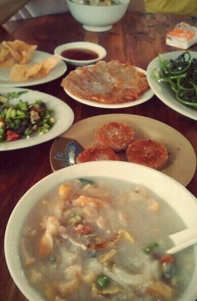 黄埔古港最旺的一间店之一!店里店外都是人啊,不过挺多座位的,很快就有位置了。环境一般,室外好一点。这里是自助式的,艇仔粥就有人捧出来问有谁要粥的。其他都要自己动手的。玉米饼、煎饺、青菜、炒粉,自己去厨房拿的。艇仔粥分量挺多的,配料也很多,味道还可以的,很绵不稠刚好。玉米饼感觉很多油,一般。价格很实惠的说。查看更多
