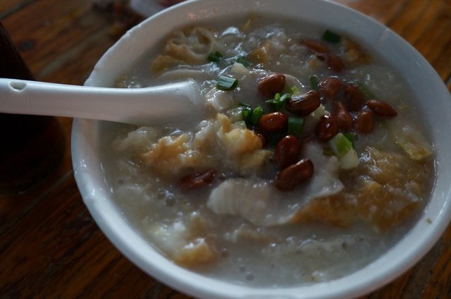 首先这间店真的太多人慕名而来,光顾的人很多,不过这里离公交站也太远了,大约要走20分钟的路程才到,这里整体的环境十分的简陋,服务员的态度也一般,不过一碗粥只要5元就能吃的好饱了,点了个香芋螺肉粥,味道很不错的,粥底很绵。查看更多