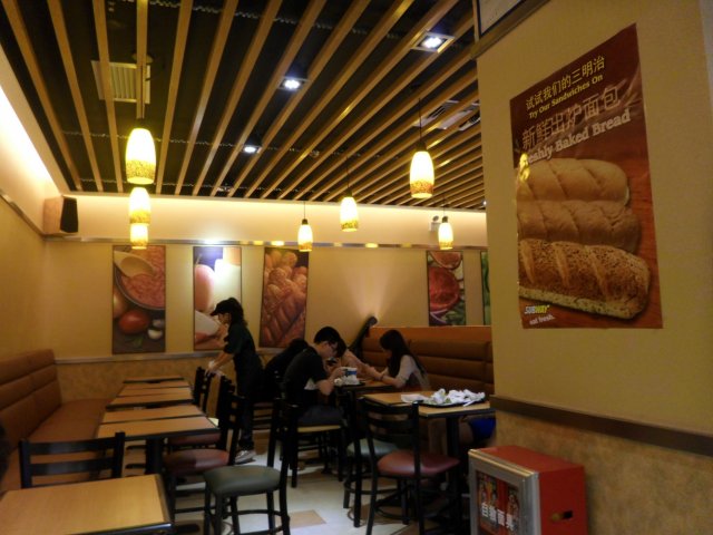 试试儿童套餐 pinkopeng等級42013-10-0658 瀏覽 關注 这个广场最近把B3楼打造成美食城,多家特色的餐厅以及大型的美食角进驻了,广场的人气顿时提升了不少。虽然食肆多了,但到了午餐高峰期,这里仍然是一位难求啊!尤其是在节假日。今天刚好是周末,和小朋友到附近的家居卖场逛完后打算到这边吃午饭,却遇到一位难求的窘况:(在心灰意冷且饥饿之际,在吉之岛隔壁居然让我们看到“希望”——人丁稀少的subway!其实平时都很爱吃这里的三明治了,觉得它比其他快餐店更健康又有营养,配料新鲜,又可以自主选择,酱料的搭配也可以选自己喜欢的。只是可能打进这个市场的时间比其他快餐店要短,而且也没有作大肆的宣传吧,所以人气也自然没那么旺而已。这家店跟其他分店差不多,不大不小,装修也是以简单为主。餐厅少不了的是点餐区和自助的汽水机。之前自己来或跟朋友来的时候都没敢点儿童套餐,今天携着小朋友终于可以一尝儿童套餐的滋味了!说实在的,儿童套餐不仅比较便宜,而且份量更适合我,平时普通6寸的三明治会觉得份量比较多,吃完觉得太饱,儿童餐的4寸的就刚好了。:)只是儿童餐的三明治馅料是固定的——火腿蛋。不过包胚、蔬菜和酱料还是可以选择自己喜欢的。加了火腿、蛋和芝士后,店员会把包加热一下,等芝士稍稍融化,吃起来就更香了!无论配哪一种肉我都喜欢清爽蛋黄酱和蜜汁芥末酱的搭配,因为这跟蔬菜还蛮合得来的既清新,也不太甜,且不会很酸。儿童套餐还配了一块甜饼作为小吃。挺喜欢这里的甜饼,即使平时偶尔也会单买几个来吃的。而这次选了原味的巧克力曲奇~~套餐的汽水是免费续杯的,这分店的选择比较少,没有我平时比较喜欢的葡萄汁。是我们太早到的关系吗?(到达时已经一点多了)走的时候餐厅才开始多人,可能是我们带旺了它呢…查看更多+ 4以上食評乃用戶個人意見 , 並不代表OpenRice之觀點。讚好分享试试儿童套餐 賽百味 (東方寶泰) https://s.openrice.com/KtbT0m0yaq3W0檢舉 張貼 評分5味道5環境4服務5衛生4抵食推介美食迷你火腿蛋三明治甜饼汽水用餐日期2013-09-28人均消費¥18 (午餐)
