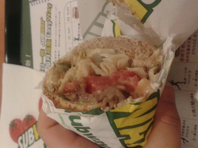 赛百味系全球最大的三明治连锁品牌,系广州都到处林立,真系随时随地都可以吃到健康的三明治。不过觉得赛百味的店基本都系偏细的,而且服务都不怎么样,有D仲比较恶劣的,还好恶劣的我仲未遇到过。之前的广发周五日买一送一的活动就真系唔可以错过,趁呢次机会就去吃翻次。要咗意大利经典套餐,送香烤牛肉套餐,一共先系38元,性价比当然系好啦。任何三明治加9元就系套餐,多咗中杯汽水和甜饼或者系薯片。意大利经典,要咗意大利白面包,里面有片培根肉,要黑橄榄、番茄、青瓜、生菜;酱汁的话要千岛酱和蛋黄汁,夹得满满的。白面包的口感都算松软,但系就稍微干咗小小,培根肉搭配咗咁多的蔬菜和面包,吃起来都有明显的偏咸,蔬菜都好新鲜的,酱汁的味道都几好。香烤牛肉,奶酪面包,里面有牛肉,番茄、青椒、青瓜和生菜;净系要咗千岛酱,当时想选多只架,不过服务员有种系度催的感觉,最后就马虎要咗一只酱啦。呢个的面包味道有小小甜,觉得同肉搭配起来好似唔多夹,另外肉会有小小的辣味,好微的,口感都可以。饮品都系其实,雪碧、可乐、美连达都系任饮,其实即使任你饮,汽水都饮唔到几多的,好容易饱,有气又甜,只系当做系解解渴啦。甜饼和薯片,我就要咗甜品,因为两份,有4块,所以三种口味都可以试齐晒。估唔到个饼系咁大个,觉得花生味会比较好吃,花生几香,而且味道唔算甜,脆脆地,几好。朱古力味,呢个味道就会甜咗小小,可可味唔够浓郁,脆就都好脆的。提子味,最甜这个啦,而且吃到提子干的时候会觉得更加的甜。薯片就免啦,都系乐事包装的,热气又无益,通常都唔会吃的。赛百味好多时的套餐都会有优惠,不过唔便得几多,基本都要30+的套餐,所以广发有优惠活动再去吃先系最抵的。…查看更多