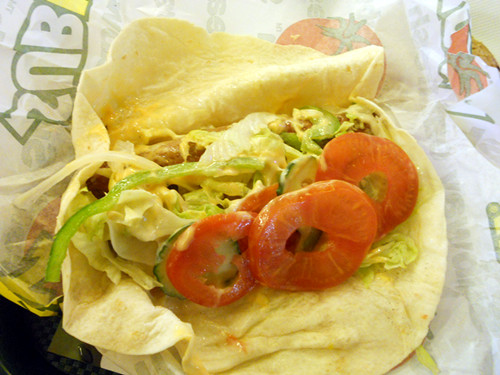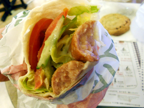 之前参加过点评的活动,可以凭签到徽章,在店里买任意食品就可以送一个subway包啦。所以当时,我就买了1个3元曲奇就可以得到一个包。超级划算。这间subway店面在体育东路的转角处。店面比较小,不过服务员态度几好。我要了一个新热奇士包。面包选择我最喜欢的奶酪包,里面的蔬菜是任选的,我肯定是什么都要点啦。酱也是好多钟自己选,选里蛋黄酱和蜜汁芥末酱。这些包包都是要多下点酱才好吃的。吃起来感觉很fresh,蔬菜很清新,没负担,还是挺好的。。平时买就有点贵了,一个套餐就要20几了。…查看更多