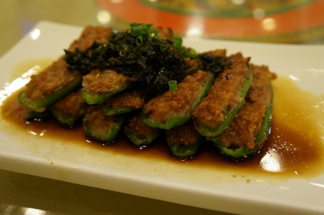 在盘福路来说是开得比较久的一间饭店,这里环境一般,桌子距离太近人几乎都挨着坐,食物的味道还可以,分量够消费也不贵,就是上菜速度方面慢点,点了个虾酱啫豆角,一上就在铁板上飘出虾酱发出浓郁的香味,豆角吸收了酱汁连豆角中间也入味了,凉拌鱼皮味道不错1,口感酸酸凉凉的又脆又入味,煎酿尖椒是油炸的所以油又多又干,味道一般般,啫啫田鸡份量足味道好,用姜蒜爆炒过的田鸡肉很香很嫩,每个田鸡脚都胖胖的很饱满,酱料和调酒比例刚好,味道不错。查看更多
