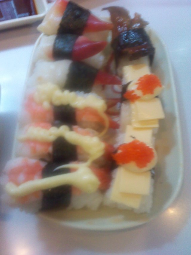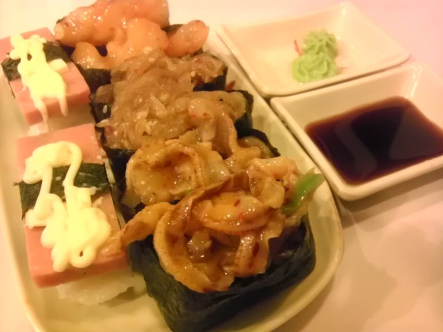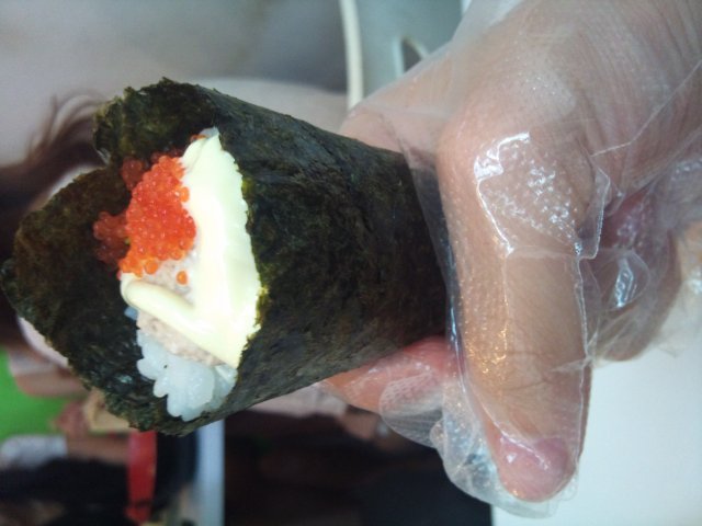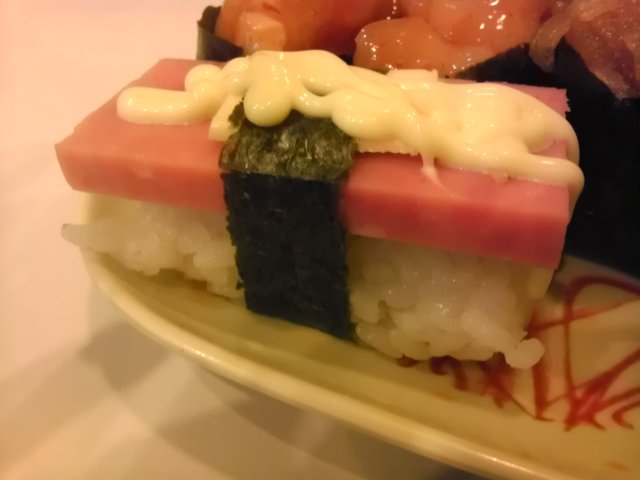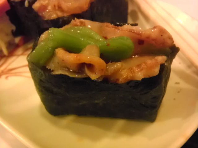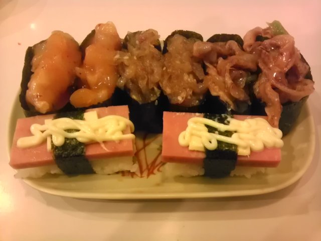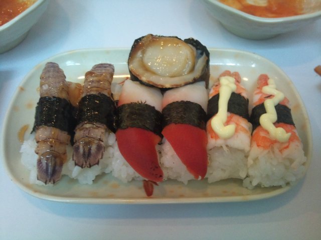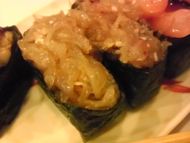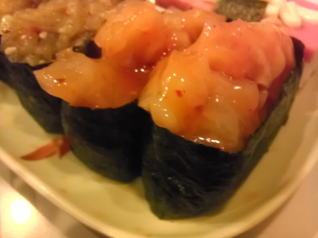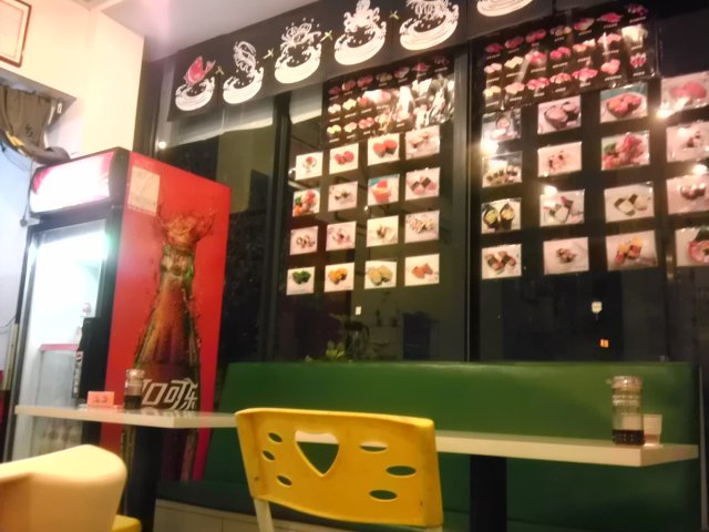 理想是随便到楼下吃碗拉面,现实是看着面前那碟貌似孤独的芥末,最后还是吃寿司的欲望占了上风,于是拉面被我无情的抛弃了,又开始了孤独的吃寿司过程。小店的面积太小,无奈客流量太大,桌椅的摆放只能相对密集,而且人一多自然就嘈杂得不行,服务人员相对少,好在响应速度比较快,埋单只能用现金,店内似乎无wifi。中华海草6元,习惯了要吃点菜类,于是海草是必点的,这里的比较清爽,芝麻比较多,不错。香芒吞拿鱼3元,感觉应该归之为卷类,外层以紫菜片包裹,内里的吞拿鱼比较香,芒果比较小,虽不香但也有些甜滑,很喜欢的搭配。芝士蟹籽1.5元,芝士片分量不错,味道不会太浓,蟹籽放得很厚道,口感卜脆,开胃不错。香芒三文鱼4元,因为芒果的甜度不高,带着些清新的触感反而降低了三文鱼的肥厚,还不错。香芒鳗鱼3元,感觉他家的香芒类做得都还不错,我是不太喜欢日式鳗鱼的甜腻的,但用芒果综合之后味道不错。三文鱼火炙寿司4元,火炙过的三文鱼更添香滑,三文鱼的新鲜度尚可,分量略少。味付八爪搭海草手卷寿司5元,这个吃得比较满足,八爪鱼的味道不会太浓厚,搭海草,很好的综合,一个手卷的个头看上去不太大,但吃完感觉好饱。寿司的个头适中,饭团紧实不松散,略有醋味,芥末比较温和,酱油的咸甜度还比较合我味口。总体感觉他家的寿司出品没有传说中的那般差劲,虽然谈不上多有特色,但胜在价格便宜,而且卫生什么的也做得不错。…查看更多