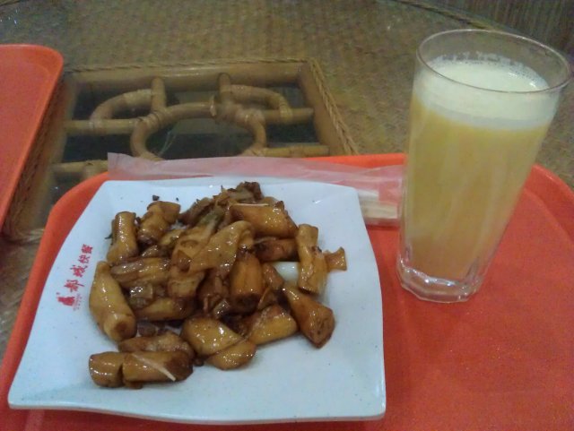 一日之计在于晨,一个醒神早餐可以提供一天充足的营养和动力,一定不可以忽视。因为去晚了,已经没有多少选择,不得不选了玉米汁+炒猪肠粉的配搭。玉米汁味道很不错,有很多玉米颗粒在里面,感觉很实在,应该不是冲出来的。炒猪肠粉就不是我最爱了,炒的比较多油,一般早上还是清淡些为好,何况猪肠粉只是外面一圈上了色,里面还是白白的,没有味道,又习惯的加了甜酱。于是一个本来应该很健康的早餐,变成多油多酱的高卡路里饮食了,罪过罪过。查看更多
