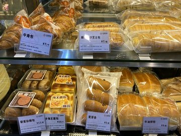 性价比很高的一家饼店要求不高的话,填饱肚子还是很好的选择这里新鲜出炉的面包要远胜有包装的新鲜的面包一定要新鲜吃,过气就不好吃了蛋挞也很松软,不错如果是要买包装的话,推荐买餐包,或是大理石面包,口感偏硬,很香牛油味