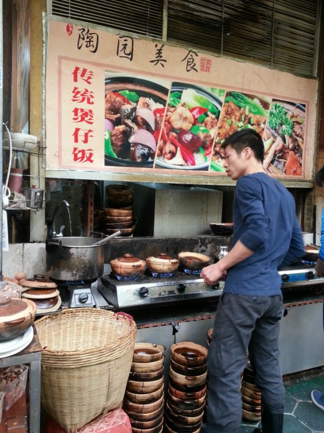 这是一家很老的店了,有各种的饭和粉面供应,品种还是蛮多的,但是最出名的就是煲仔饭了,所以一到吃饭时间就会看到店里店外都坐满了人,个个人面前都是放着一个个煲仔的。我觉得最正宗的就是农家腊味煲仔饭了,只要十二块钱而已,还算比较便宜的了。有腊肠和腊肉两种腊味,再搭配上翠绿的菜心,看着就很原始的感觉了。最主要的还是他的饭做得非常的好,火候控制得刚刚好,外层不多不少刚好有一层饭焦,既不会很硬,又不会少了吃饭焦的乐趣,腊味都切得很薄的,在饭上面一同煮熟,所以下面的米饭都吸收了腊味的油,整煲饭都弥漫着腊味的香味,在秋风起的时候吃上这样一煲煲仔饭,实在是太美味了。查看更多