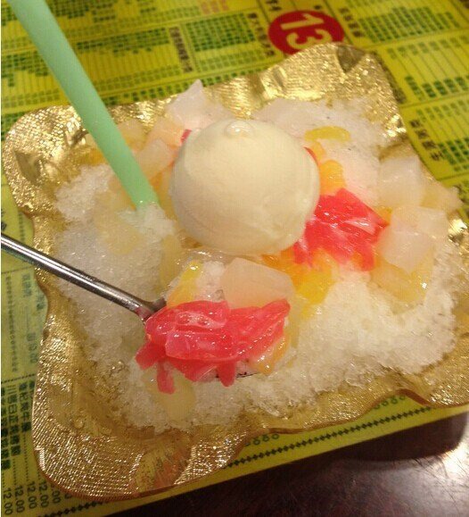 总评:依旧是很出名的老字号,生意也很火爆。但是不知道是不和我胃口还是怎样,反正这家店是我去过之后感觉有些失望的店。作为一家冰店,还卖很多主食一类的餐点,让整个用餐感觉糟了很多。冰品也做得不精致,然后就是食材也不怎么好。价格不算便宜,但是吃得不开心。不太理解,为什么会这么受欢迎呢。。。。评分: 65分性价比:❤❤ ♡ ♡♡看门面感觉比较小呢。但是进去之后才知道,里面还有很大的一个大屋子。人多起来看起来超级混乱,还吵闹,完全没法好好的吃一碗冰,跟一个路边大排档的感觉一样。在这样的环境里面再好吃的冰,恐怕也要打折扣吧。店里有两个厨房一个是做冰品的,一个是做热食的。太混乱了。干嘛取名为冰室嘛。完全就是混淆消费者。【榴莲雪糕】小亚以为雪糕就是像我们往常吃的那种那样带木棍的呢,结果就是一颗冰淇淋球。哎。。。 这名字真的很奇怪啊。好吧。味道还行吧,要得榴莲口味还是比较浓郁。但是在重环境下吃真的是毫无心情。只是想着赶紧吃完走人,太挤太热了。【刨冰配哈密瓜雪糕】25这个是黄黄点的。小亚一看到冰上面那黄的,绿的,粉的椰果条就毫无兴趣了。看起来好廉价好廉价啊。 完全就是色素做出了的劣质品嘛。冰本身也比较粗糙。真的不理解为什么这个值得到25元也不理解为什么生意这么好,更不理解这种也可以算是老字号?好吧。或许是我的问题。反正我不喜欢这家。肯定不会再光顾了。想想当时的环境就觉得好混乱啊。哪像一家吃冰的店哦。查看更多