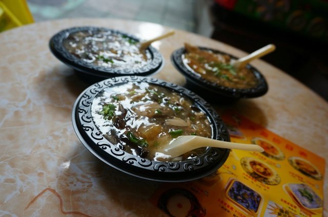 和伙伴们出去溜达,饭后他俩约佐去越秀山睇波,饭点自然就往哪个方向跑了。就近去了应元路,说真的真心没啥好吃的地方,带着朋友不敢当白老鼠,都系试回颇有群众基础的一些平民小食好了,结果感觉一般。【食盈碗仔翅】不用多说的啦,吃翅专门店,当然不是山珍海味里面的翅,是碗仔那种。上过各大节目,深受美食达人推崇的【食盈】,讲真的,Su珊之前一直没有机会一试。傍晚5点,巷子里的这家【食盈】宣传单上的八九个品种,只剩下两个了,不知道是不是人气很旺晚来卖光了,还是怕没人来买不敢多做,反正对美食颇为花心的Su珊是有点小失望的。店面积小,只能摆下两三桌,坐在路边吃上碗仔翅还真的别具一番深刻的美食体验。PS:一次性的碗筷感觉还是不错的,厚实,黑色雕花,高端大气。【花容月貌翅】(10元):食材主要木耳丝、冬菇丝、瘦肉丝,不同的是加了花胶和响螺片,爽口Q弹,胶质满满。会主动问客人要不要加葱和芫茜,这点挺好的。【童叟无欺翅】(15元):这款添加领导北极贝、希鲮鱼的翅色泽显更金黄诱人,伙伴们说偏腥,Su珊倒觉得ok,比花容月貌翅要鲜,甜度也更高些。…查看更多