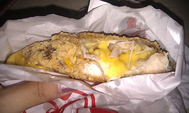 芝士鸡排 平平第一等級42012-07-2910 瀏覽 關注 每日坐地铁路过体育西A口都发现有成班人系度排队,某人好奇去睇下究竟有乜好事~~原来是卖炸鸡排的,有一种是内馅有芝士的,对于我呢个芝士控黎讲点可以错过,拿拿临排队俾钱,然后再排队等罗,因为拒家号称是现点现炸的,所以等的时间相对会长D~~约莫10分钟,鸡排拿到手了,外表是黄得黎有少少暗,唔知是米过火左,件数都几大件,成个手掌甘,肉算嫩,咬开有D爆汁,最正是芝士流晒出黎,但是D芝士有D偏咸,加上吃左成大旧肉,所以吃完后觉得好鬼颈渴,而且一件落肚,又有芝士,顶肚到乜甘,可能两至三个人分黎吃会适合D,价钱18蚊一件就稍为偏贵左咯。…查看更多以上食評乃用戶個人意見 , 並不代表OpenRice之觀點。讚好分享芝士鸡排 鸡排超人 https://s.openrice.com/KtbT0m0WUC200檢舉 張貼 評分3味道3環境3服務3衛生3抵食