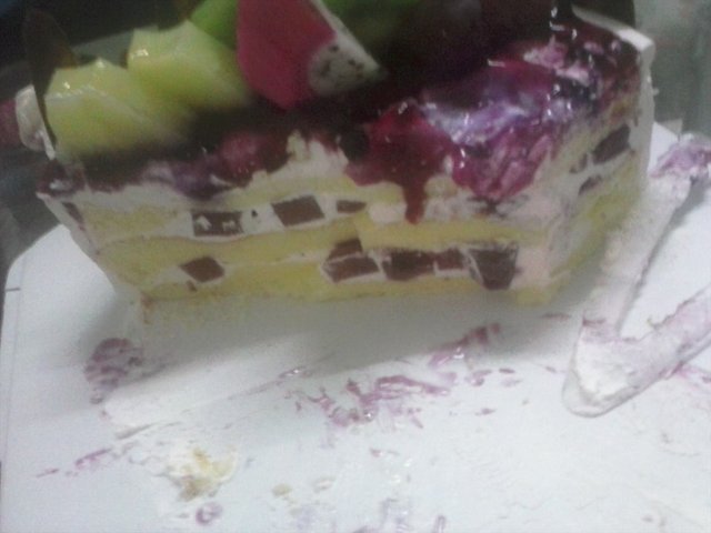 这蛋糕是在母亲节前一天订的,没有比平时贵,这种蓝莓蛋糕还是68一磅,以前走过这间蛋糕店的时候,制作坊里往往会传出很香很香的蛋糕味,味道比其他店的都浓。 这蛋糕上面有很多蓝莓酱,不会太酸,调得很好,而且有很多各式各样的水果,切开了之后,蛋糕里面有一些像啫喱糕一样的东西,又不会弹牙,而且边上的巧克力片有点苦,但很美味。查看更多