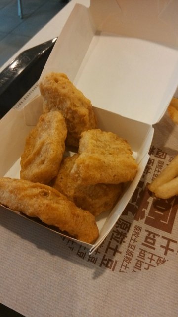 逛街很无聊為了蹭WiFi來麥當勞點了份套餐。真的不餓就要了份麥樂雞15元。好久沒有吃漢堡現在越發覺得是不好吃了。。尤其是現在曝光的新聞實在太多了。這些大塊的冰鮮肉真的挺讓人不舒服。。我個人是很喜歡吃薯條。。最近都是在吃漢堡王。。喜歡上漢堡王那種比較大size的薯條。。一條的土豆炸起來之後趁熱吃真的是外酥裡嫩。不沾番茄醬吃原味的更好吃。。今天的薯條還是不錯。。尤其是因為這個剛出爐是熱乎乎。倒是不覺得油膩就覺得土豆真的很香。。不沾番茄醬更好吃了。。麥樂雞有5塊相對正餐會覺得不夠吃。。用做下午茶會覺得剛好。一小塊的很誘人。。但如果你想吃到雞肉的原味。。那是沒有肉。。攪拌過後肉沒有了彈性加了麵粉再油炸。。基本上是麵粉裹肉。不怎樣把。。可樂一般我不讓加冰。。加冰之後沒啥味道。。。…查看更多