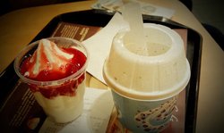 麦当劳的环境卫生各方面都做的不错,而且价格不贵,经常有特价套餐,而且食物种类比较多。买了一个甜筒一个圣代,甜筒的奶味比较重,而且甜甜的,脆皮也比较脆,圣代喜欢吃草莓味的,草莓味轻微有点酸酸的感觉,但是圣代的分量感觉比较少呢。查看更多