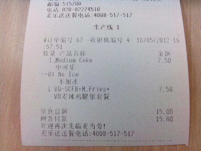 这间麦当劳地方比较小,不是很宽敞,特别是冬天的时候,空气很浑浊,通风不好,有点难受,每次经过都必须要买一个圆筒来吃,有时候吃完一个都还要第二个,很香很滑的奶香味,还有下面的皮很脆很香,又快要到夏天了,又可以吃我最爱的圆筒咯查看更多