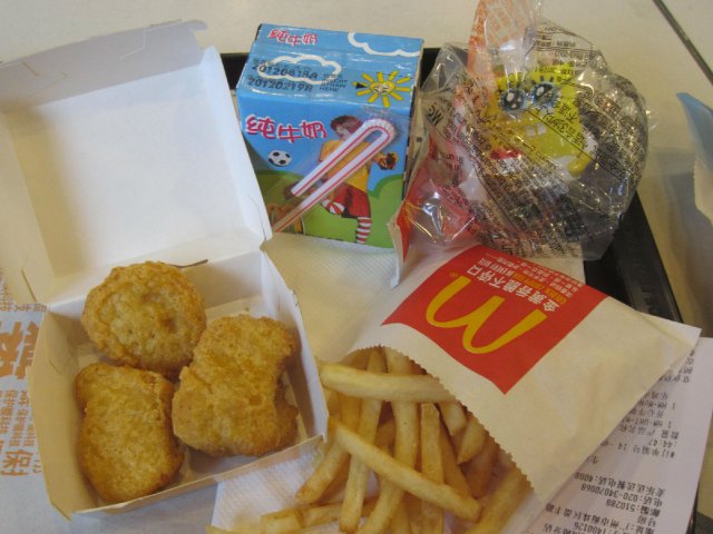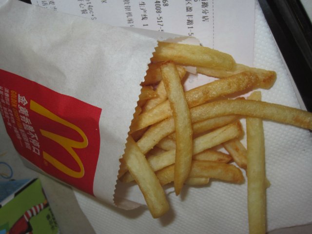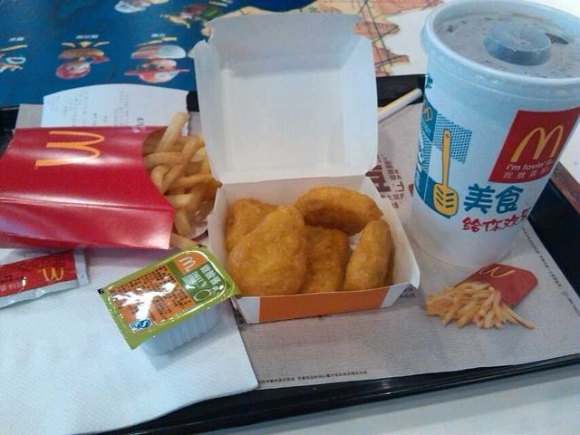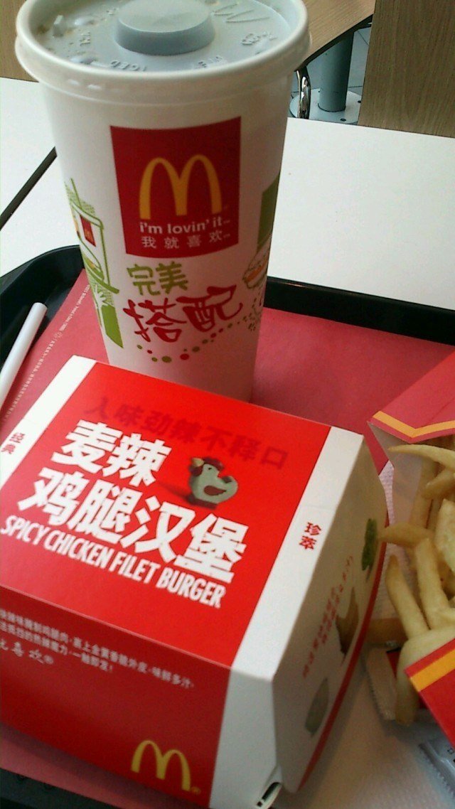 这家麦当劳是在盈丰路,在晓港湾对面红绿灯的位置,在路口,还是比较显眼的。店门口都是落地玻璃,可以晒到太阳,旁边就是麦咖啡。一般都不到麦咖啡那边坐,要么坐下需要消费,要么店员经常过来问需不需要点咖啡。中午十一点半左右到店,有超值午餐,但是现在都涨价了。点了一份麦辣鸡腿堡餐,麦辣鸡腿堡,今天的炸鸡腿比较大块,炸得很香脆,生菜比较多,但是沙拉酱比较少。薯条炸得很香脆,盐粒比较少,不会太咸,也不用蘸番茄酱吃。将可乐换成热巧克力,刚冲好的,所以很烫,但是热巧克力会比较腻,下次还是选可乐好了。店员的服务态度还是不错的,很有礼貌,但还是会循例推销他们新推出的产品。…查看更多