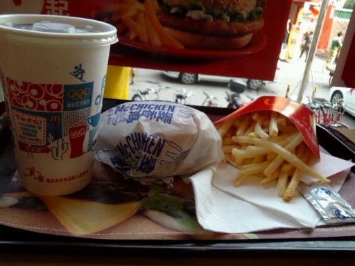 这间麦当劳人流量很大。很多外国人。感觉这间不是很干净。。店面倒是挺大的。店员态度还不错。上菜速度也很快。午餐和晚餐都是15元起。要了一个板烧鸡腿堡。配的是可乐和中薯条。鸡腿堡个头变小了。不过鸡腿肉味道还是不错的。有点小辣。中间好多蔬菜。可乐味道也怪怪的。。中薯条分量很多哦。炸得挺好的。一个套餐还是挺饱的~查看更多