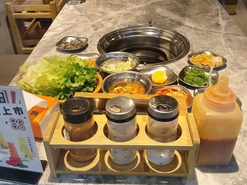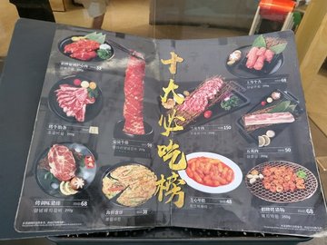 招牌秘制護心肉 / 五花肉 / 牛肋條 / 小菜 / 芝心年糕 / 招牌烤豬腸