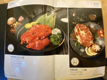 招牌秘制護心肉 / 五花肉 / 牛肋條 / 小菜 / 招牌烤豬腸 / 芝心年糕
