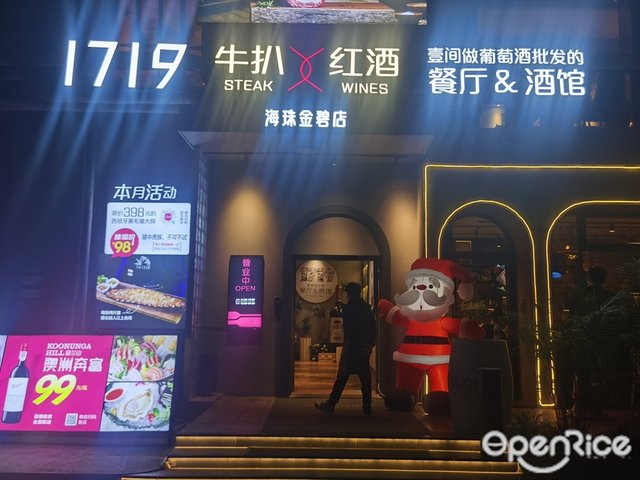 1719牛扒&紅酒 (O2PARK創客公園) (廣州) 網址: https://s.openrice.com/KtbS0m0FQ1r00 地址: 廣州海珠區東曉南路片區工業大道南882號O2PARK創客公園B38棟1層31,34號鋪 電話: +86 16666181719