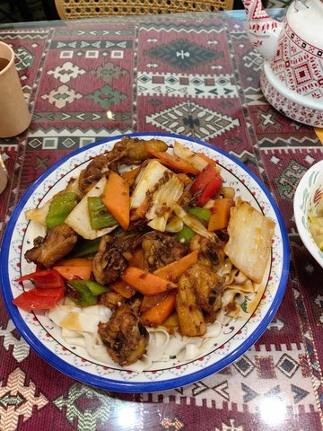 單人手抓飯 / 新疆特色大盤雞拌麵 / 素手抓飯 / 丁丁炒面 / 菠菜面筋 / 干煸豆角