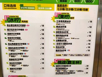 招牌手打檸檬茶 / 特濃手打檸檬茶 / 黃皮冰檸茶 / 多多汁葡萄冰檸茶 / 海底椰冰檸茶 / 山茶花手打檸檬茶