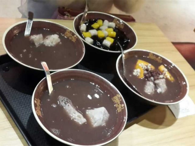 逛街逛累了,就来这家微博朋友圈都很红的糖水店来试一下。虽然只是下午三点多,可是队伍已经排很长了。店面有点小。有点难找。位置也不是很够,和不认识的人拼桌是必须的。然后等位的时候一直有人宣传说加他们的微信可以有优惠,减多少钱我忘记了。我点的是芋圆,冰很大一块咯~~~然后芋圆嚼起来qq的、很好吃,推荐的是他们的爆米花,超级好吃。好像是20左右一罐,看电视看电影都可以,嘻嘻查看更多