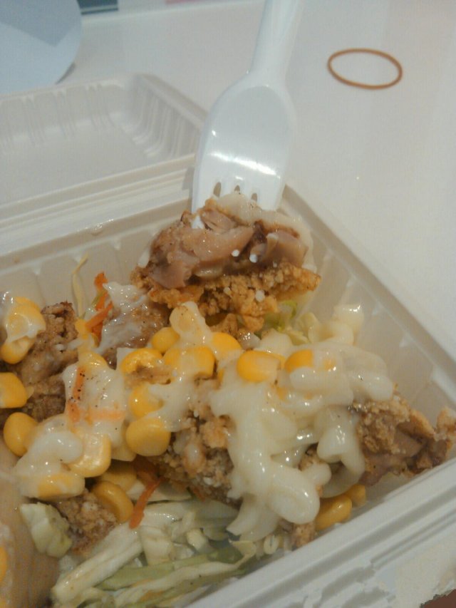 时尚天河这边生意很好的炸鸡专门店,店员的态度还不错,就是经常都要排队等比较久。现在比起以前也推出了好几款新口味的鸡排或者煎炸类的小食,但我个人还是中意几款老款的经典口味盒子鸡排。这次点的是芝士盒子鸡排,厚厚一层的芝士酱非常香,鸡排炸的火候也不错,外脆内嫩,不过稍微油腻了一些,幸好芝士酱里面有满满的甜玉米粒,正好可以中和一下。…查看更多