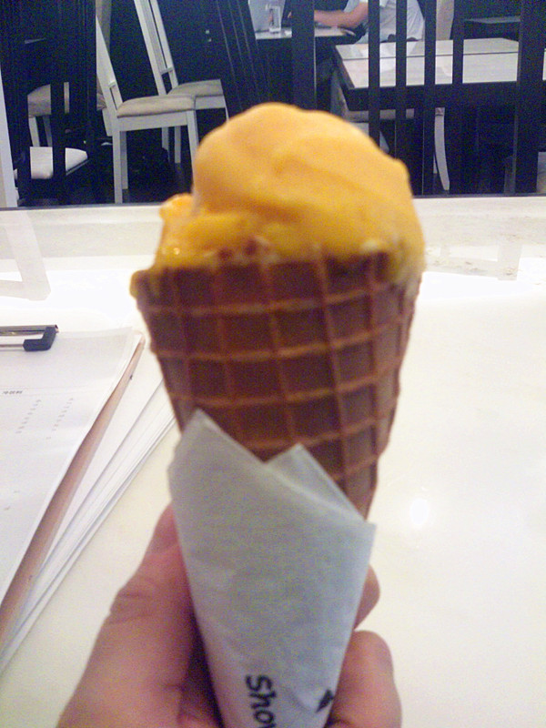 很不错的一家欧式餐厅,简约的装修风格,门口的招牌是黑色大理石白底字,非常醒目。这里的雪糕值得推荐,听店员说是纯手工做的,用鲜果制成,品种多样,我要了一个芒果口味的雪糕球,真的是很浓郁的芒果香气,而且雪糕很滑,酸酸甜甜的,非常诱人!这里的咖啡听说也不错,下次再去尝试~~查看更多