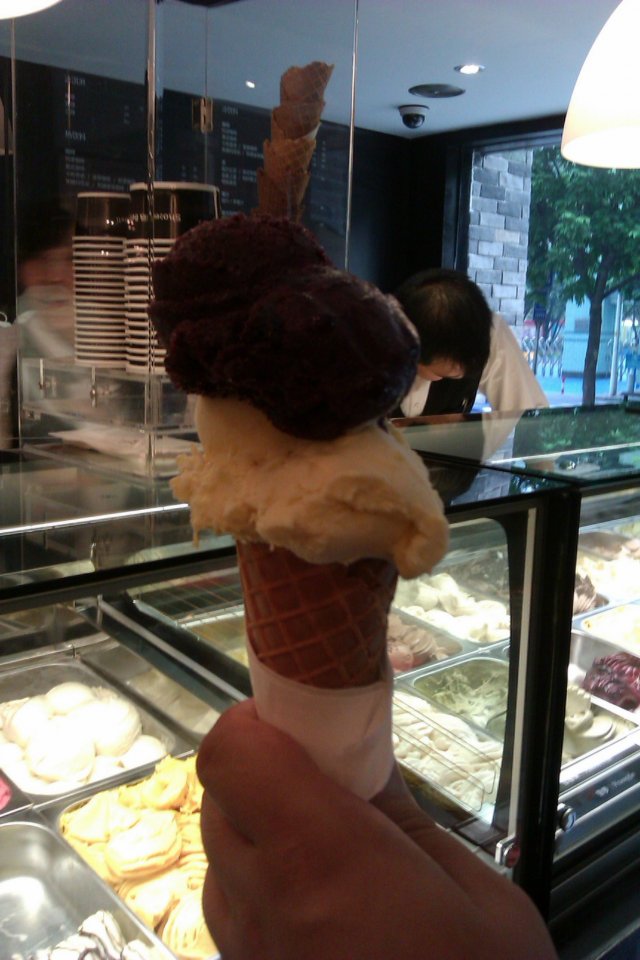 门面是黑乎乎的一片,经过一两次都无意进去,可在珠江新城工作的朋友却说里面的意式手工冰淇淋超正点,没忍住诱惑,就一起去了。这里的冰淇淋品种很多,至少有二十种,在无从下手的情况下,餐厅的服务员居然说可以试吃,试到顾客喜欢吃的味道,然后再购买,哇,这福利不错。我试了至少有八种味道,最后还是确定买了榴莲味的,因为我发现水果味的雪糕里全是水果的原味,香浓得不行,大口吃也不为过。一球32元,比哈根达斯实惠多了。查看更多