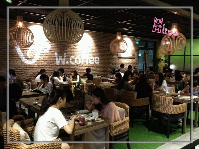已经很久没试过在一家coffe店里呆一下午了在天河,我觉得W.coffee是个好选择到下午会有不少人去hea tea了很明显的门面远处都能看到这个招牌!而且不难找就在石牌桥地铁站隔壁附近就是万菱汇逛完街可以来这里休息下在一楼,是点餐的地方有很多菜品有沙冰、卡夫饼、还有些汉堡类、三明治类的。看到都好想吃!可惜我只有一个胃!下次肯定试试看别的!店面挺大的,有两层。我还是喜欢二楼 就上去了有个书桌,里面有些书,可以供客人看我觉得挺好的,书很多都是外国名著下午看看书,喝喝咖啡很写意的一下午。我点了热的拿铁【29元】味道还可以 但是我不习惯喝那么苦的我就加了一包糖 刚好。口味很喜欢 不会特别苦特别涩朋友点的冷的拿铁【29元】相对于冷的拿铁,我还是更倾向喝热的拿铁我觉得冷的拿铁 喝的只有苦味跟那冰冷的口感【华夫饼 29元】分量很足 上来的时候我都惊呆了上面的是cream,我还以为是雪糕cream很甜,很腻 配上华夫饼 味道真的刚好!甜而不腻 就是吃完三块之后觉得很饱华夫饼很松软 有一点甜再搭配拿铁来喝,觉得这下午茶棒极了!我们两个“软妹子”的下午茶吃完完全不想吃晚饭了因为!肚子!太撑了!!下楼拍了一张我觉得这里挺漂亮的但是二楼会有点吵幸好我去的时候有点晚 人不是很多但是二楼摆了很多桌子人多有点儿吵 位子还会提供一些抱枕很nice!查看更多