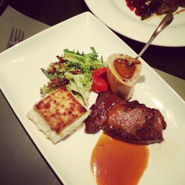这里主营意大利菜,价格属于中上偏贵,环境还算可以,装修很漂亮很小资,座位很宽广不会太拥挤,周围环境比较安静,点了个牛排不错食材很新鲜,七成熟做得火候刚好,外层烤得焦焦香香的肉质也很嫩,酱汁也调得不错搭配牛排中间保留的肉汁很好吃,但配芝士土豆就有点显腻了,个人认为还是适合配一些口感清爽点的东西比较合适。ดูเพิ่มเติม