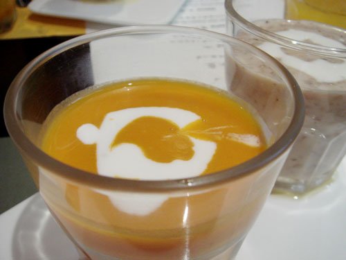 期间上了三种唔同口味的新特饮,仲未改名架,系Wilber's的新浪微博里面仲有改名活动添,呵呵..分别系芒果味,黑加仑子味同埋一杯与拿铁极度相似的咖啡饮品..我就私底下以Barbra Streisand的几只专辑去命名了,顺便参加活动咯,哈哈。跟住就上汤了,第一次饮用杯黎装的汤,感觉好过瘾啊,而且杯下面好贴心地落佐一D油落去,用作吸住杯同碟之间以免D汤会倒泻,记贴心的谂法。两种汤分别系蘑菇忌廉汤同埋红萝卜玉米浓汤。蘑菇忌廉汤就系用蘑菇打碎变蓉再煮制而成的,相当浓郁,而且入口有啖啖蘑菇碎,口感好正。至于红萝卜玉米浓汤亦都系以新鲜食材打碎制作而成,并且有种酸酸甜甜的感觉,非常适合女仔饮的一款汤,仲好养生,可以美容添。配的面包上面铺佐一D番茄粒同青瓜粒,虽然有洋葱,但食落口味道唔会太浓烈,应该系有做过一定的处理。ดูเพิ่มเติม