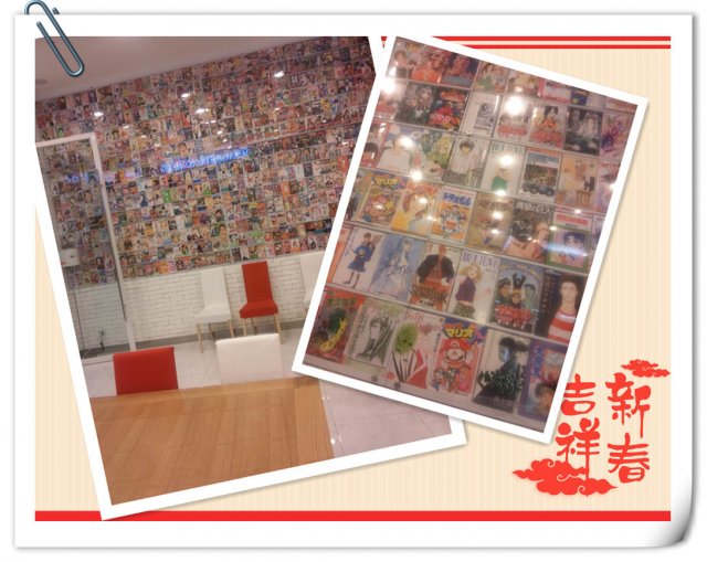 店铺的装潢简约,门口有饭团灯箱点缀,亮点是这里专门制作了一堵漫画墙,摆满各类日本动漫画的书皮,餐厅一角还摆满了日本本土的杂志漫画之类,就餐当天见到食客不乏日本家庭。