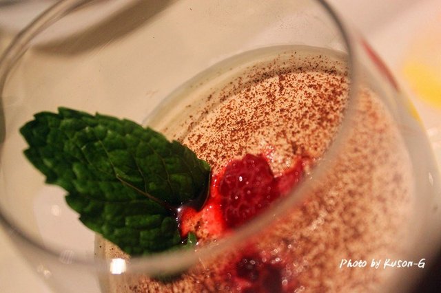 玻璃杯底部的各种水果,上层的提拉米苏蛋糕口感细腻,但是当天的水果带有少许的酸味,有点小失败