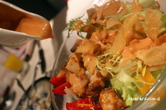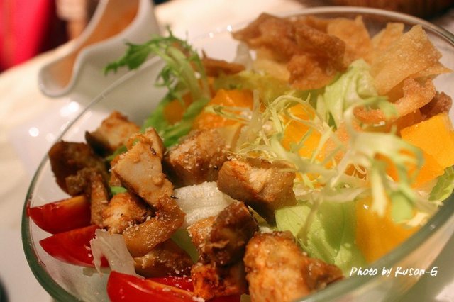 鸡肉很嫰,水果很新鲜,材料的配合味道十分搭
