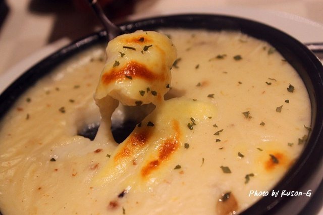 蜗牛经过炸,口感有点蓬松,奶油汤低,挺香口
