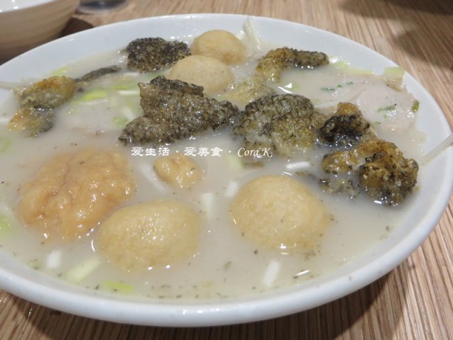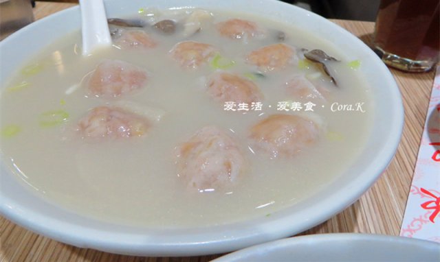 杂锦鱼汤的卖相非常诱人,各式鱼类制品就那么徜徉在奶白的浓鱼汤表面,鱼包鱼腐鱼丸鱼皮就那么诱惑着我的食指,可惜胃只有一个,只能试了试汤和鱼包鱼皮,那叫一个鲜甜滋味,特别是萝卜完全吸收了鱼汤的鲜,美味无比。