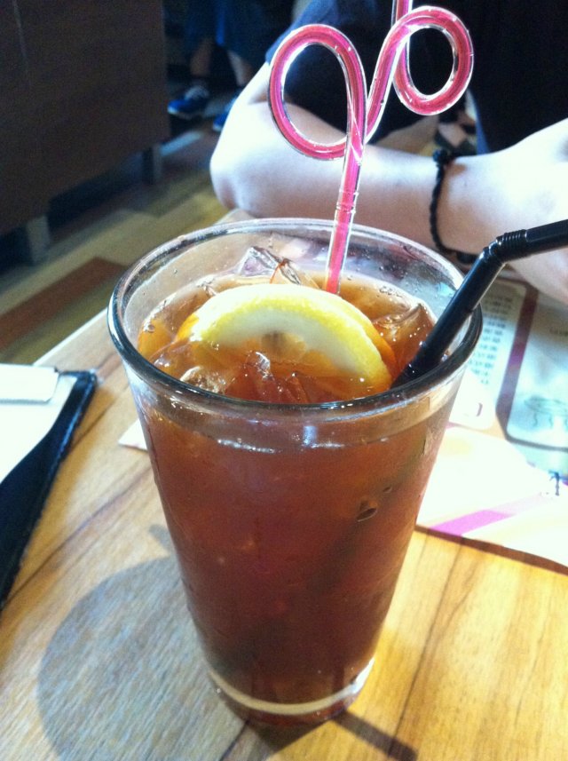还有一杯柠檬茶,比较甜,要把柠檬戳烂了才好喝。