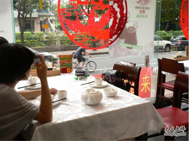 店的装修花花禄禄,以大红为色调,很有农家喜庆的感觉。